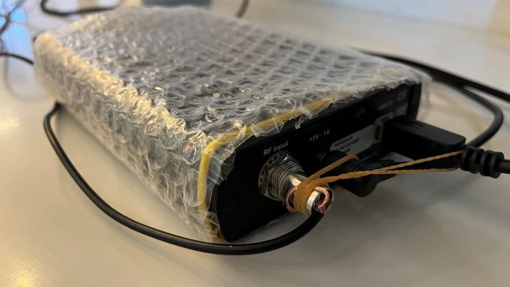 普段から工作とかする方は工具とか結束バンドとか常備しているんでしょうけど、わたしは全くそういう能力がない人なので、ここは最も弱いところです。^^;; でも、たまたま爪切りと輪ゴムを持っていた自分を褒めてあげたい!(笑) 爪切りがなかったら同軸の被覆も剥けず、完全に詰んでいました。。。^^;;