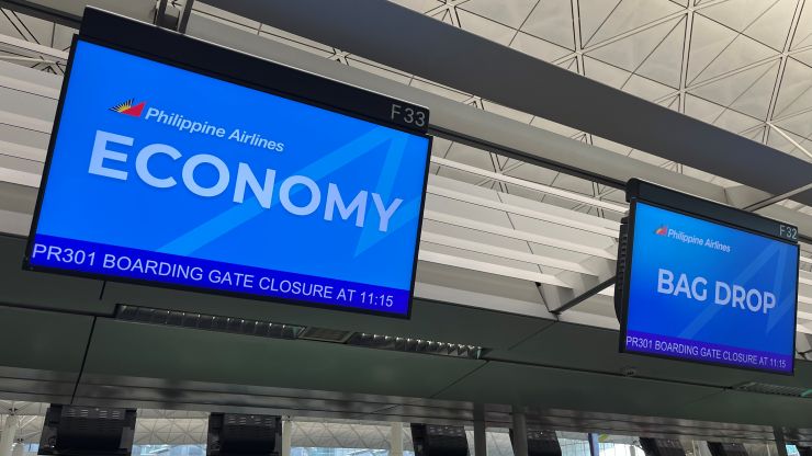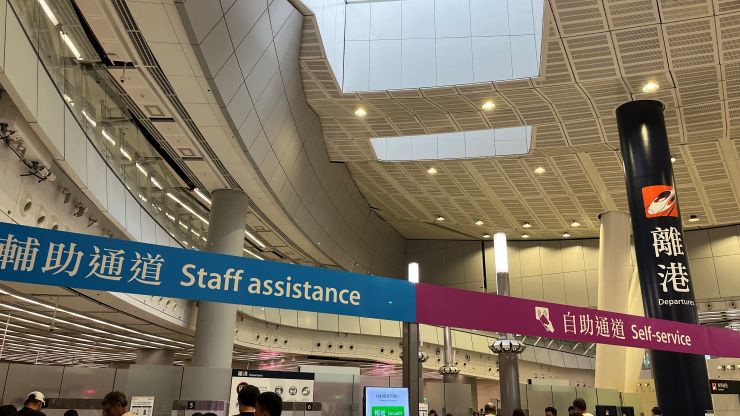 香港国際空港。 およよ、思いがけず、フィリピン航空のカウンターはガラガラです。誰ひとり並んでいないじゃありませんか! ↓