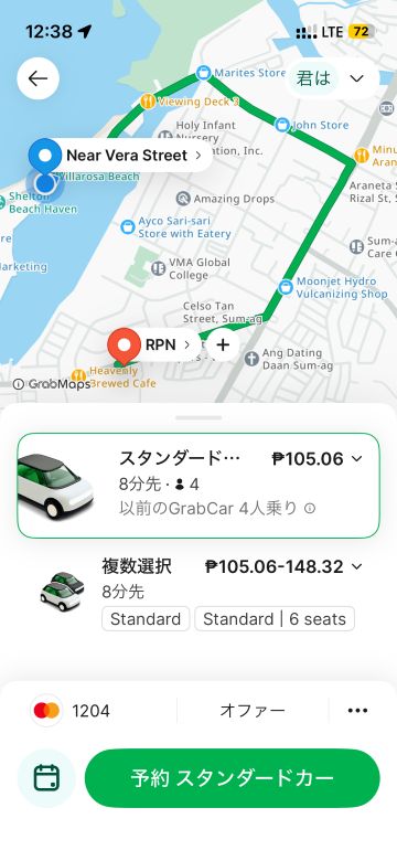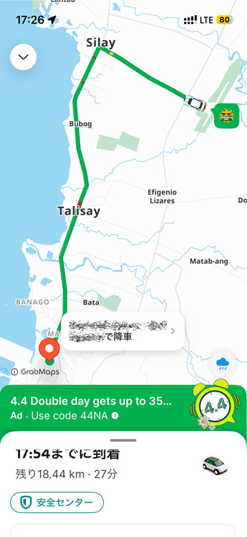 スーツケースは1番で出て来て、空港からホテルはGrab。 プエルトプリンセサやジェネラルサントスと違い、バコロドはGrabがフツーに使えます。これさえあれば怖いものはない!(笑) 空港から市内中心部のホテルまでは、およそ20キロ。約30分。441.87ペソ也。日本円換算で1,200円弱といったところかな。 少し高い気がしなくもないけど、フィリピンはここのところガソリンが高騰しているみたいだし、仕方ありませんですね。