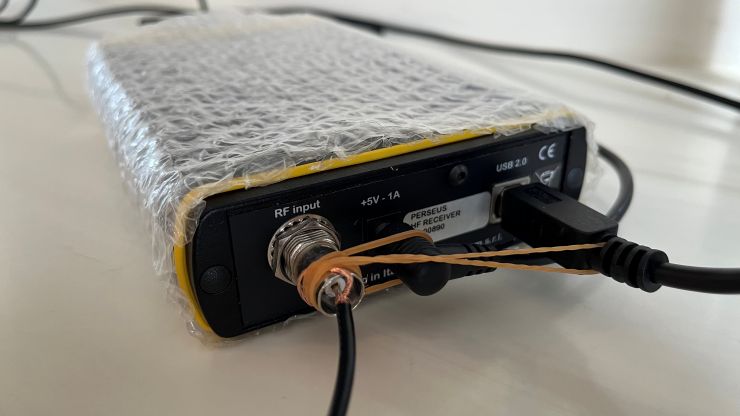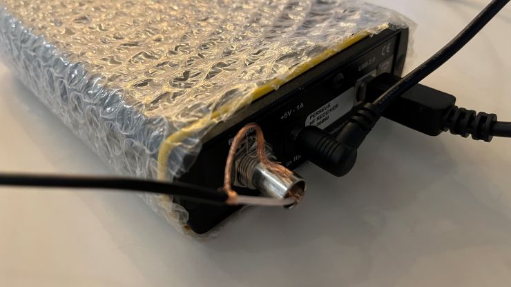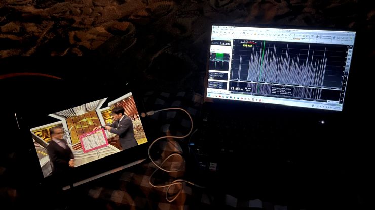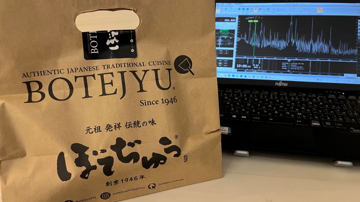 普段からよく工作する方は工具とか結束バンドとか常備しているんでしょうけど、わたしは全くそういう能力がない人で、この部分は最も弱いところです。^^;; でも、たまたま爪切りと輪ゴムを持っていた自分を褒めてあげたい!(笑) 爪切りがなかったら同軸の被覆を剥けず、完全に詰んでいました。また、輪ゴムなんて普段はゼッタイ持っていないのですが、今回はたまたま1つありました。とても不思議。。。 ↓ やりました! やりました! これで聞こえるようになりました! あまりキレイな波形ではないけど、バコロドの市街地であることを考えたら十分。プエルトプリンセサのときのような爆裂ノイズもないみたい。 ↓