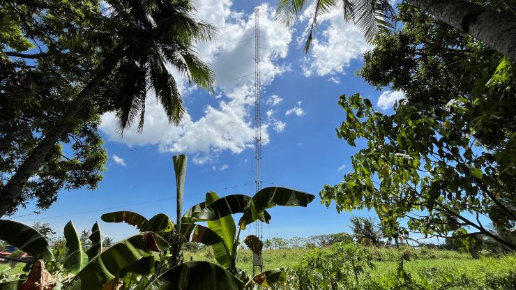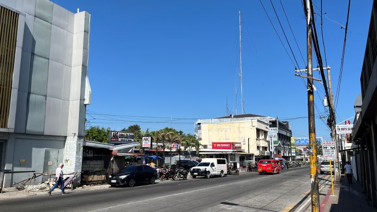 当地時間09時、ホテルを出ます。 雲ひとつない晴天、、、はいいけれど、こりゃ暑くなりそうだ。。。(-。-; ホテルを出て大きな通りに出たところで、高く聳える送信アンテナが目に入ります。地図からすると、RMN Bacolod(DYHB)だな。^^ ↓
