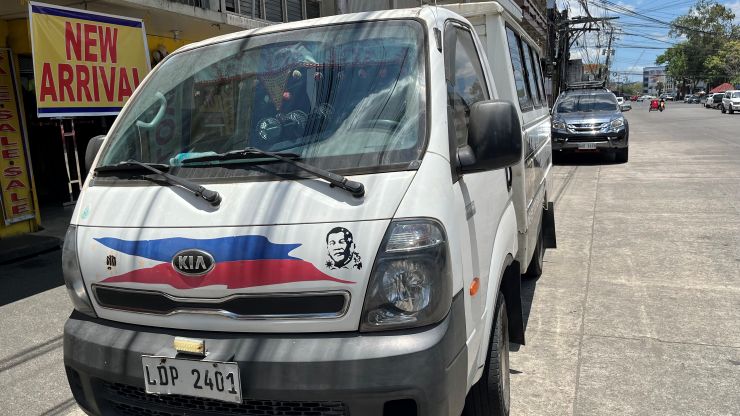 それにしても暑い、、、(-。-; 正午近くになり、どんどん気温が上がっているみたい。(-。-; 水筒に冷水を入れて来たので、何度か休憩しながら水分補給します。日傘代わりの雨傘がないと、この炎天下は厳しいものがあります。。。 およ、ドゥテルテさん? ↓