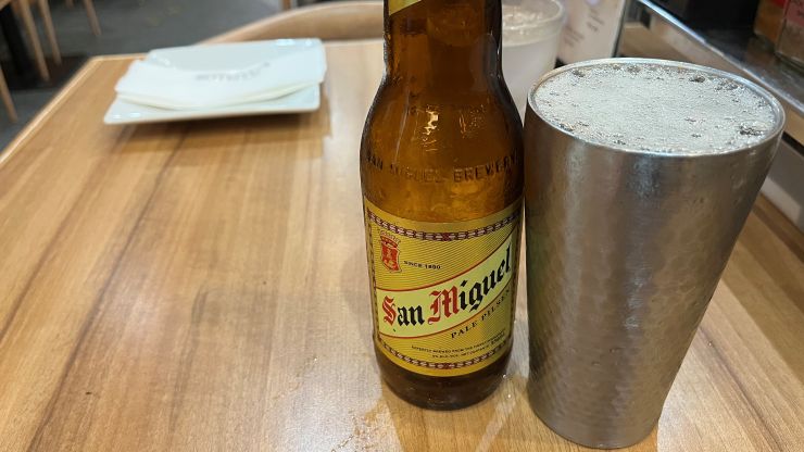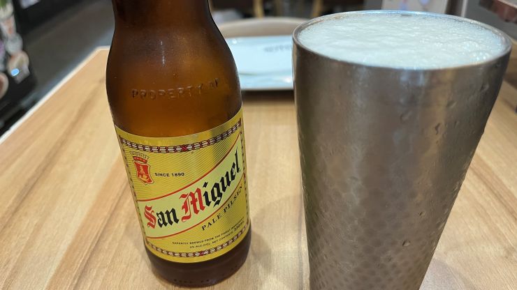 せっかく来たので液体燃料を注入します。もちろんサンミゲル。 いやぁ、タマりません。^^ \ ↓