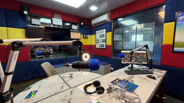 ここも、事情を話して局内に入れていただきます。フィリピンは英語が通じるのがいいね 〜 スタジオ。