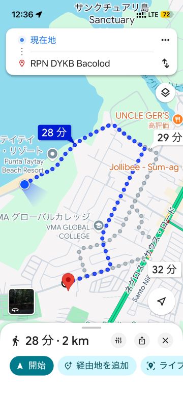 バコロドは、今日も朝からキョーレツな太陽が照りつけています。暑くなりそうだけど、本日は移動日なのであまり関係ないかな。 本日のフライトは、バコロド当地時間11:25発のフィリピン航空2132便(PR2132)マニラ行。 過去の実績を見ると、いずれも遅延なく飛んでいるようです。国内線だし、ゲートが2つしかないローカル空港なので、まぁ、1時間ぐらい前に着いておけば十分かな。 ホテルから空港まで、Google Map ではおよそ30分と出ます。 ↓ ただ、何があるか分からないし、先日のように定刻より早く出発した、なんてことがないわけではなさそう?なので、油断せず少し余裕を持って出ることにしました。 当地時間09時少し過ぎ、ホテルをチェックアウト。Grabのタクシーを呼びます。
