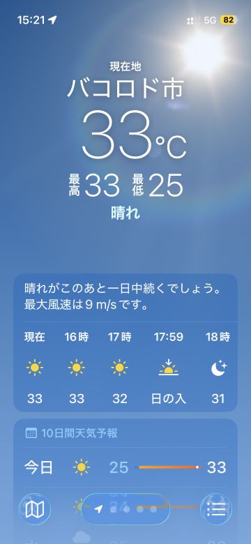 いやぁ、日中のバコロドは33度ほどで、暑い! でも、日本の夏はフツーにこれより暑くなるようで、これから戻って、どうなりますことやら。。。(-。-; (-。-; (-。-;