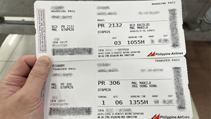 今回は、およそ2時間のトランジット。 すべてスムーズなら最高の乗り継ぎだけど、香港からのフライトが遅れたり、予期せずイミグレで時間を取られたりしたらアウトです。 賭けのようなもの?だけど、今回はすべてスムーズでよかった! このあとは、当地時間16:20発のフィリピン航空2135便(PR2135)バコロド行 〜 ↓