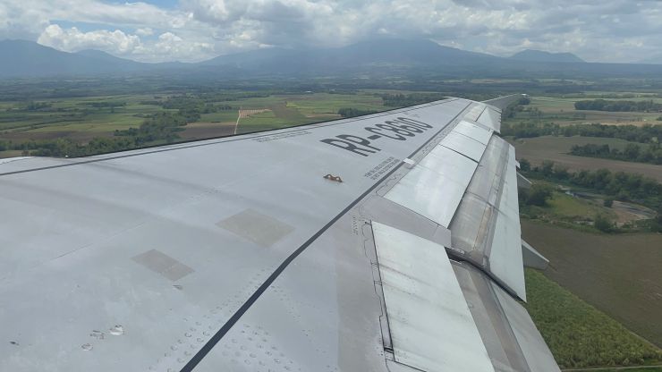 マニラからバコロドまで実飛行時間は58分、とアナウンスしています。 アッと言う間に最終着陸態勢 〜 ということで、やって来ました、バコロド・シライ空港。国際線の乗り入れはなく、ゲートも2つしかない、ごく小さなローカル空港です。 ↓