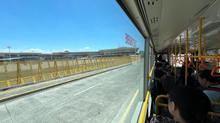 マニラには、定刻より少し早く到着。 ここから、ターミナル1 に向かう連絡バスに乗ります。 この乗り場がとにかく分かりにくいわけだけど、2月にも来ているので今回はスムーズ。以前、Nさんも迷っておられましたっけね。^^ ↓