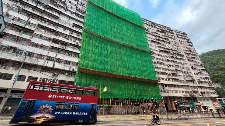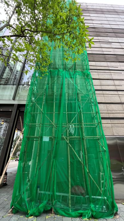 モンスターマンションの外壁工事、まだ続行中。何をどう修繕しているのか、よく分からないけど。↓