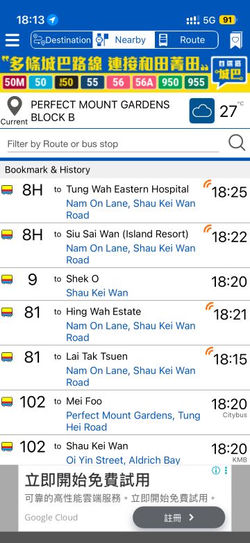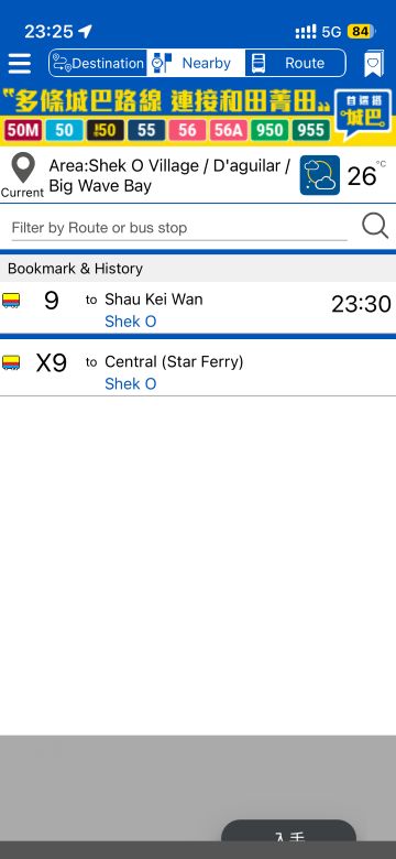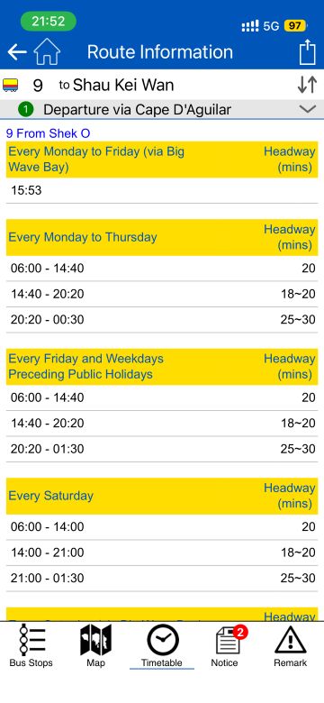 駅でバスの時刻をチェックすると、石澳(Shek O)行は当地時間18:20発があります。 こりゃ、ちょうどいいね 〜 ↓
