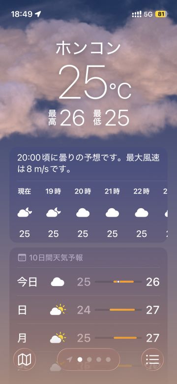 香港は、今日も低い雲が立ち込める、どんより曇ったパッとしない天気。取りあえず雨は降っておらずよかったけど、明らかに大気の状態は不安定です。 毎年、この時期はこんな感じですねえ。(-。-; ↓