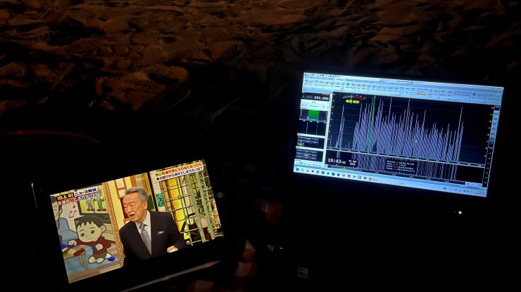 当地時間21時より、安住紳一郎さんの報道番組に切り替えます。 ペルセウスくんはマジメに、帯域記録に励んでくれています。時折ワッチしてみると、お空のコンディションは悪くない感じ。 前回 は深夜から早朝まで初のオーバーナイト・ペディに臨みましたが、全く成果なく終わりました。お空のコンディションによるものか、バーベキューサイトで聴いたのが悪かったのか、いずれにしても、取りあえず今回はよかった 〜