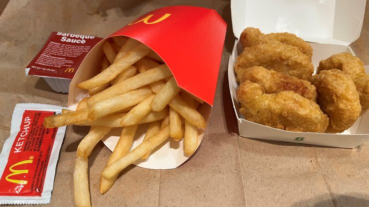 エクスペディアで予約すると座席の事前指定は別料金で、USD 30をケチったのがイケなかった!(笑) 今回は窓側の席が取れず通路側となってしまい、あーれー (-。-; 搭乗後少し機内で待たされて、出発は当地時間12:07。定刻(同11:30)よりおよそ40分の遅延となりました。マニラでいつものようにターミナル1から2への移動があるのでチト心配だけど、これぐらいなら巻き返せるかな。 機内食。 「Chicken」と「Fish」のチョイスがあり、迷わず前者にします。 チキンはチキンしかないけど、フィッシュはどんなフィッシュが出て来るか分からないからね。石橋を叩いて渡る、まさに「チキン」。(笑) これ↓意外と美味しかったりします。機内食で出れば仕方なく食べる、というレベルではあるけどな。