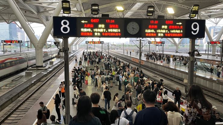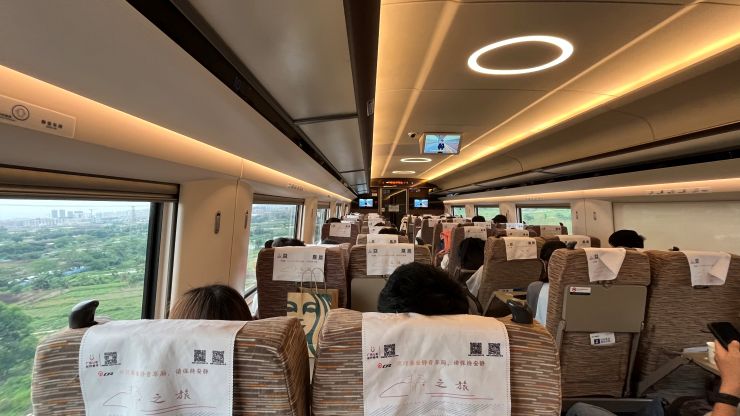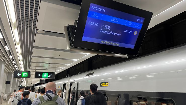 思いのほかイミグレの外国人レーンが混んでいて焦りました。(-。-; 事前のオンライン税関申告を未登録の人が少なからずいるようで、電車の出発時刻を前にあたふた。わたしは前回引っかかっているので ^^;; 今回は大丈夫です。(笑) しかし面倒臭いシステムだよね 〜 (-。-; 乗車口で、Fさん、Dさんと合流しました。 本日は、当地時間09:08発のG6510・広州南行。 ↓