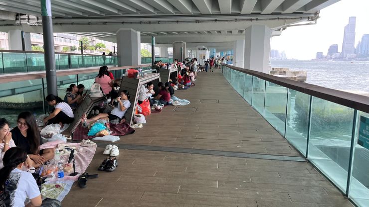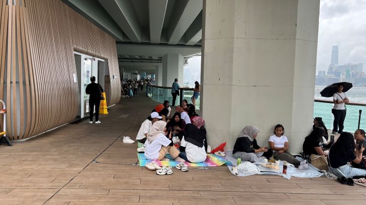 ここも! 雨も直射日光も凌げる。トイレも無料Wi-fiも完備。 この遊歩道整備は、もしかしたら、週末になると街中に溢れ返るヘルパーさんをここに集結させるべく香港政府が仕組んだ奇策だったりして。。。 ↓