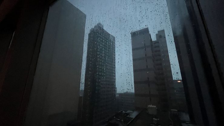 フィリピンにしてもベトナムにしても、いや、香港もそうか、この時期は台風があるのですべて運とタイミング次第。 これからフライトが定刻通り飛んでくれるといいけど、、、(-。-; ということで、当地時間11時半少し前、奥方と自宅マンションを出ました。^^ 中型のスーツケースを引いて駅の乗り換えは面倒なので、今回はバス。 出たときは小降りだった雨も、途中で滝のようなゲリラ雷雨となりました。こりゃすごいー (-。-; ↓