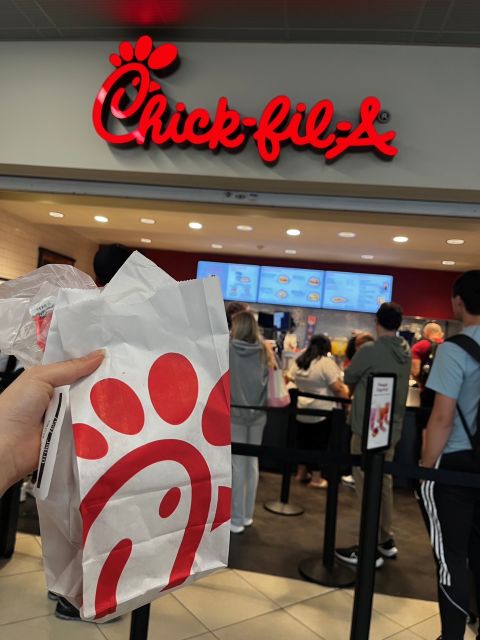 空港のコンコースC にChick-fil-Aがあるのを思い出して、「まだ時間あるから、行ってみたら?」。 「行く!」というのだから、やっぱりみんな大好きChick-fil-A。(笑) ↓