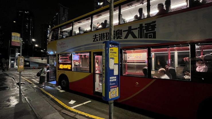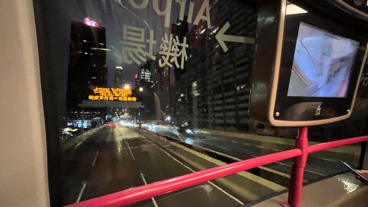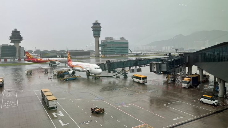 ダナンから香港まで、実飛行時間は1時間半。 香港空港は、2019年7月、台湾出張の際に一度だけ乗ったことがあるだけで、これが2回目。このエアバス・A321 は中央に通路を挟んで左右3席の配列で、東京(成田)にも就航しています。 座席にモニターがなかったり、全席エコノミーというのはあるけど、各座席のピッチは狭いわけでもなく(あ、特に広いこともないけど ^^;; )、東京まで3時間半のフライトで価格的にリーゾナブルというならこれもアリかな、と思いました。 無事、香港国際空港に到着。 まさかのタラップ → バス移動、しかも、最も遠い200番台のターミナル着か 〜(雷雨があったみたいだけど、たまたまこの時間は雨が上がっていて助かった 〜 ^^;; ) ↓