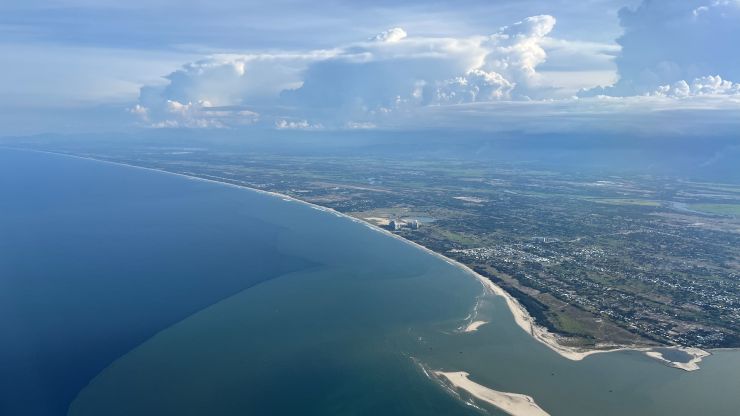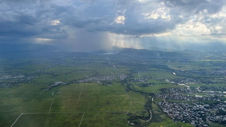 ・・・が、搭乗はしたもののなかなか出発許可が下りないとかで1時間ほど待機となり、アレレ 〜 スムーズに出発できる前提で乗せたんだろうけど、でも、まぁ、他のフライトの状況を考えたら、1時間ぐらいで済んでよかった。 このフライト、驚いたことにニッポン人が多くて何じゃこりゃ! 3席並びの隣も日本人で、お盆休みに香港を経由してダナンに行く家族連れと一緒になってしまったみたい。(-。-; (-。-; (-。-; 木曜(平日)に、こんな沢山の香港在住の日本人が搭乗しているとは思えないしなぁ、、、(-。-; 香港−ダナンの実飛行時間は1時間半ほど。アッと言う間にベトナムの海岸線が見えて来ました。^^