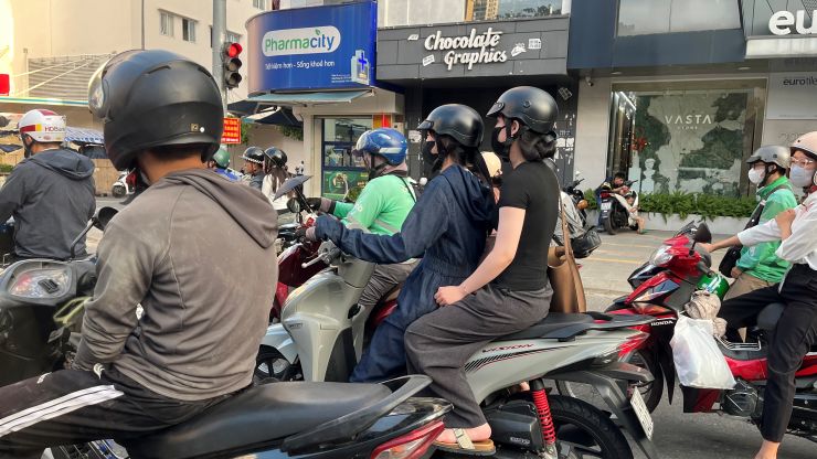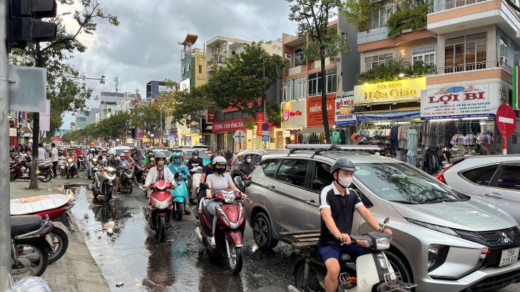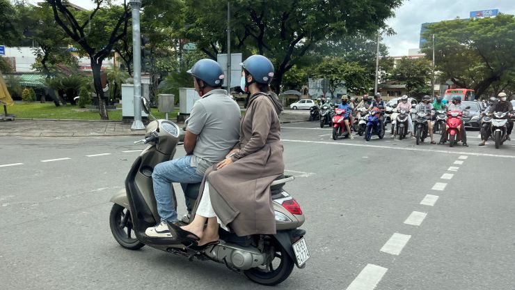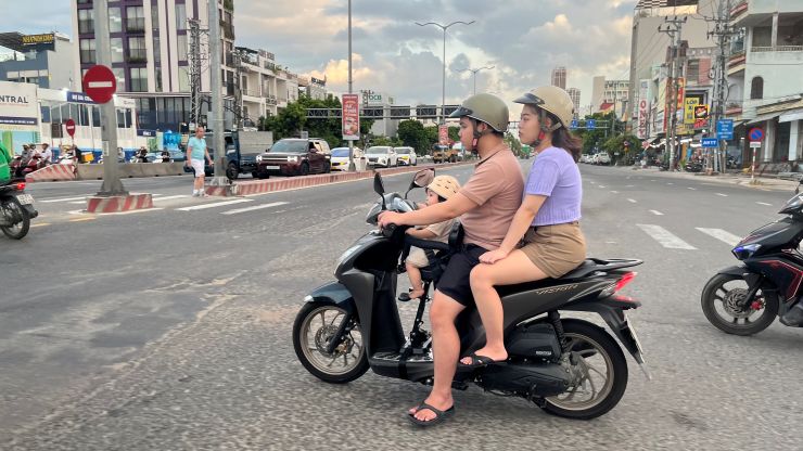 ランチの後ホテルに戻り、預けていたスーツケースをピックアップして、Grab で空港に向かいます。 ホーチミンの比ではないにしても、ダナンもバイクがすごいね 〜 ↓