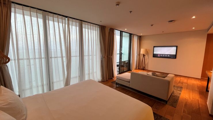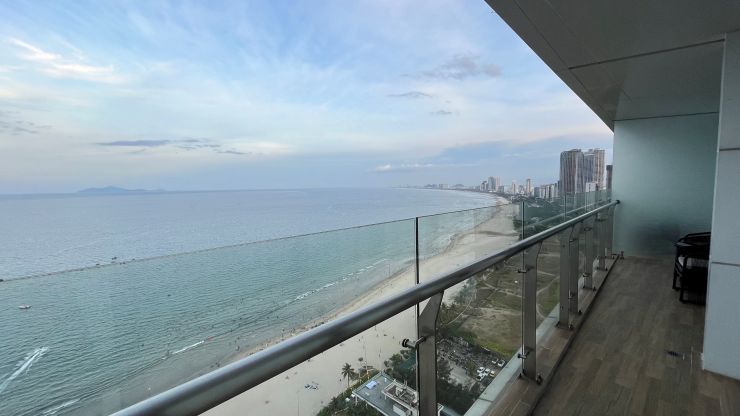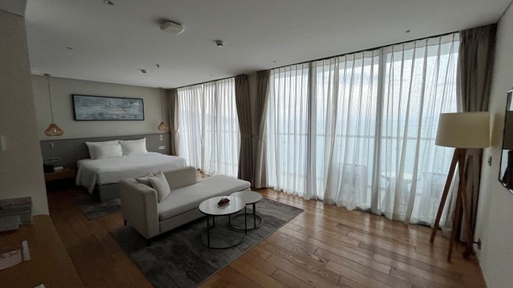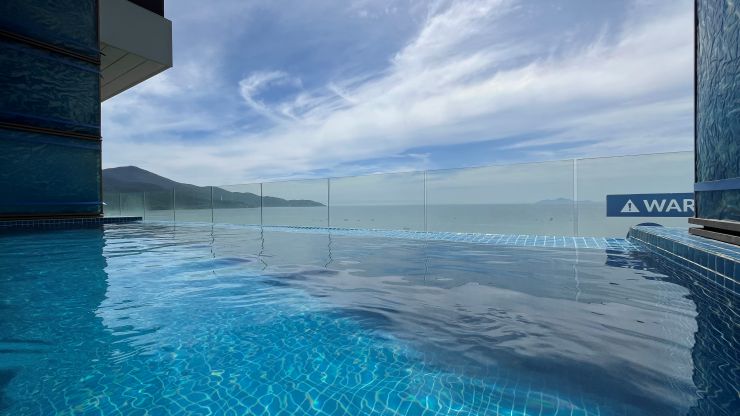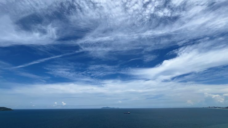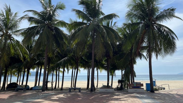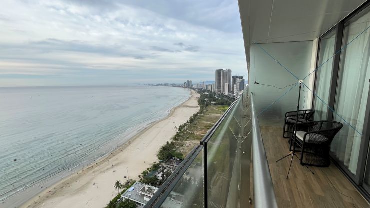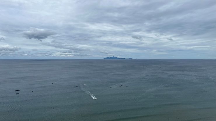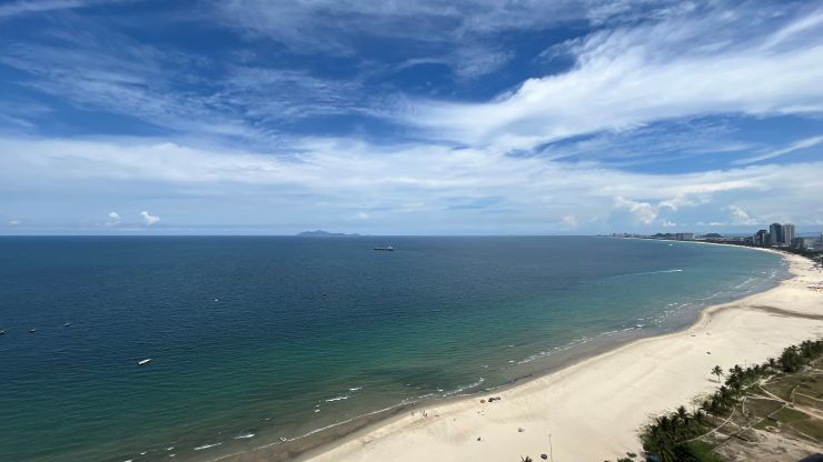 ということで、当地時間20時からの(奥方の)スパにも間に合ってよかった 〜 せっかくフエまで行ってあまりにも駆け足の往復となりましたが、フエ帝都は一通り回れたし、ベトナムのローカル鉄道も体験出来たのでヨシとします。 今夜あともう1泊し、明日夕方発のフライトで香港に帰還予定 〜 ^^ ■ 2025年8月17日(日) 〔 TOP 〕 ダナン(ベトナム)旅行・4日目(最終日) ダナン → 香港移動 ダナン滞在、4日目(最終日)。 本日はこれから、夕方発のフライトで香港に戻ります。 ホテルのチェックアウトは正午。昨日はフエからちょうどダナンに戻ったタイミングで激しいスコールに遭いましたが、アレレ、今日も朝から本降りの雨。(-。-; 午前中いっぱい時間があるので、ホテルのプールとかサウナでのんびり過ごすとします。 そのうち、雨は上がりました。バルコニーで目前に広がる海を眺めながら、まったり。(幸)