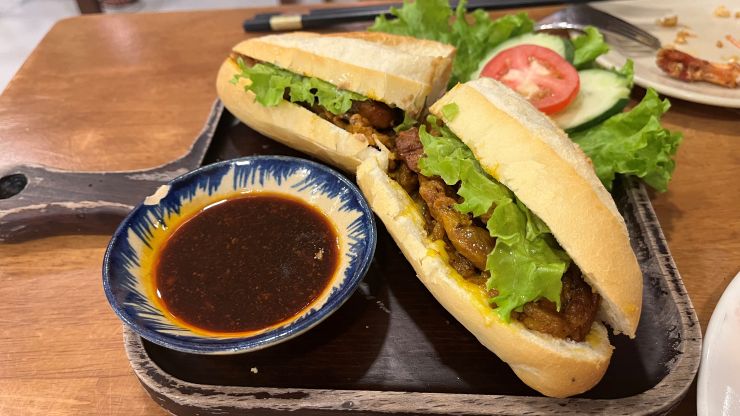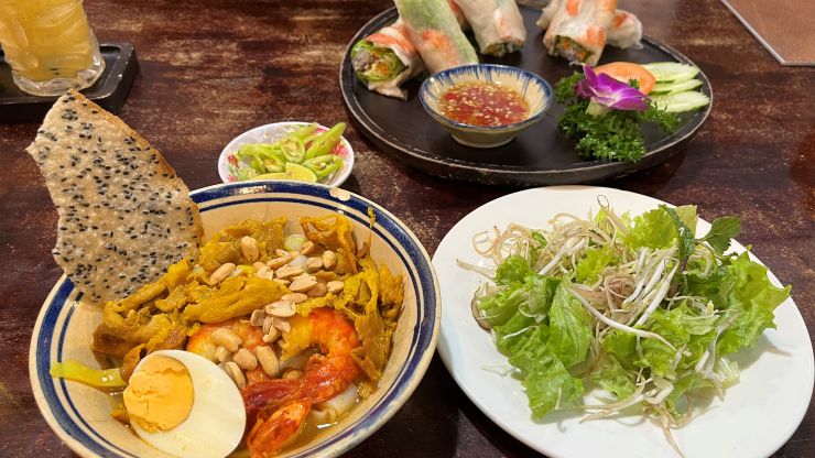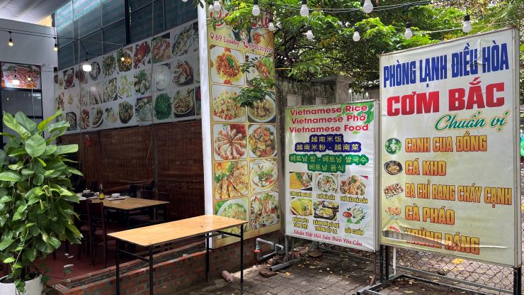 滞在中あまりに気が抜け過ぎて、このあと現実世界に戻れるか心配。。。^^;; フライトは、当地時間16:25発。同14時半に空港着として、ホテルからおよそ20分なので、同14時まで時間があります。 チェックアウトは正午。コンサルジュにスーツケースを預けて、奥方とのんびりランチに出かけました。 ホテルの界隈はここ数日でそれなりに歩き回ったので、おおよそどのような店があるか把握出来ています。最後の食事、ということで、これまでとは違う店にチャレンジしてみます。^^ Quan Com Que。 ↓