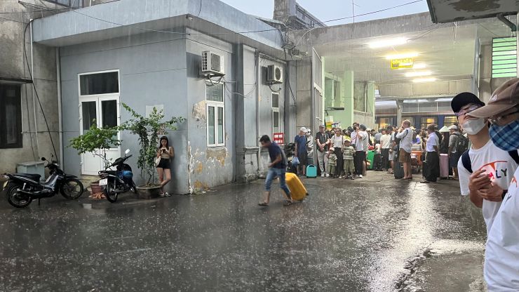 ダナン駅を降りたら、バケツをひっくり返したようなスコール。(-。-; (-。-; (-。-; ↓