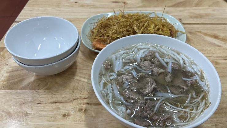 フォーが最も安全なので、またこれ。^^;; 滞在中に何度が食べたフォーは、すべて平麺。このあたりは平麺が一般的なのかな? ↓