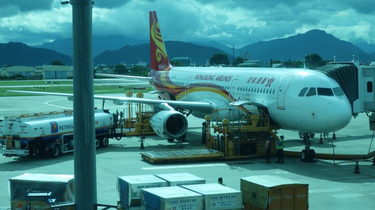 帰りのフライトは、当地時間16:25発の香港航空549便(HX549)香港行。 行きに乗った548便(CX548)が同15:25に到着し、そのまま549便(HX549)となってとんぼ帰りするフライトです。 ↓