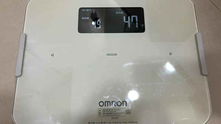 帰宅後、いつものように体重測定。 47キロ、、、じゃなくて、「体年齢」47歳。(笑) ↓
