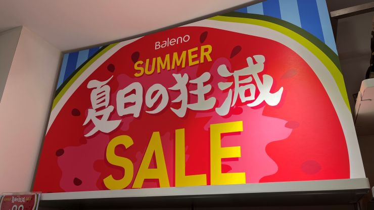 催事は、これまでのところ、なかなかいい感じみたい。週末のかき入れ時なので頼むよ 〜 ^^ 小一時間ほど客入りや売り子さんの接客対応を確認して、退散。 以前も何度か書いたことがありますが、香港では、日本語の「〜 の」をよく見かけます。 「〜 の」の前後は広東語由来?の言葉が多くて、日本語だとチト違和感があるモノも、、、 例えば、「夏日の狂減」。(笑) 要するに「狂ったかのようにすごい値引き」ってことが言いたいみたい。(笑) ↓