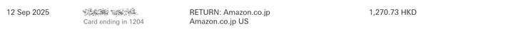 本日、クレジットカードに1,270.73香港ドルがリファンドされました。 だから、、、「返品」じゃないんだって! ↓