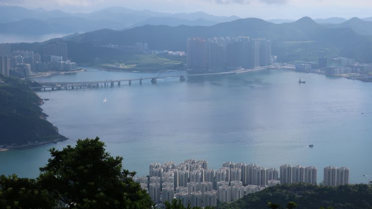 将軍澳跨灣連接路。 ↓