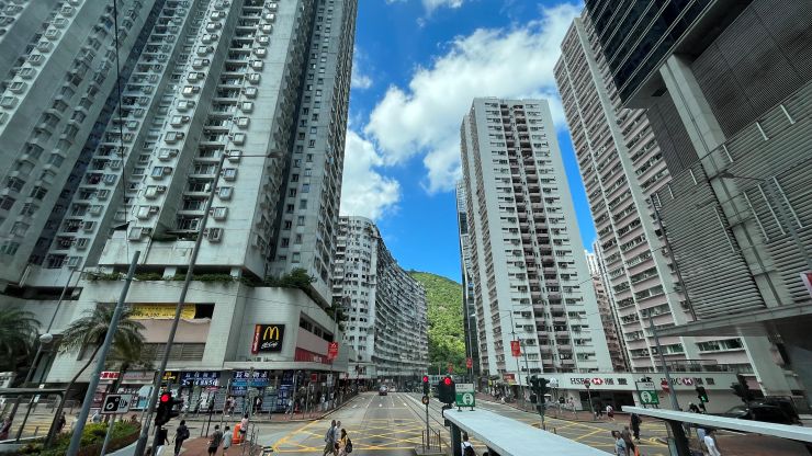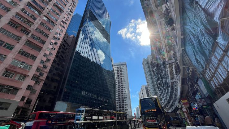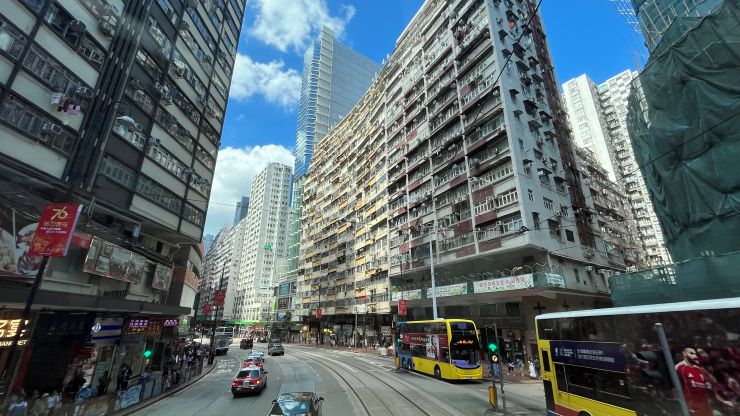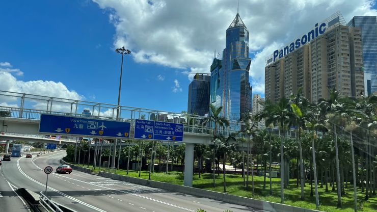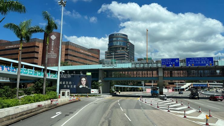 クロスハーバー・トンネルを抜けると、出口のすぐ前方左側に香港理工大学のキャンパス 〜 2019年暮れから翌年はじめ、抗議デモの際、学生による籠城事件が起きたところ。今はもう、さすがにそんなムチャは出来ないな。 ↓