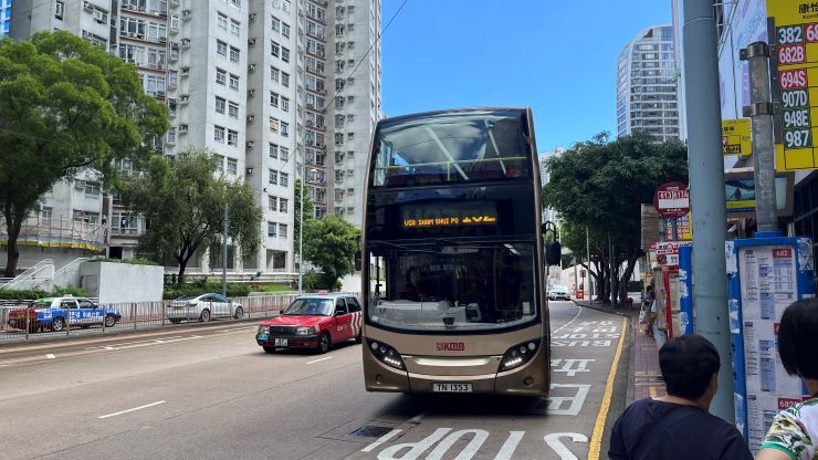 お空のコンディションは可もなく不可もなく、といったところだけど、何だかんだと日々入感局の顔触れが変わるので楽しめます。^^ 今日は、朝から雲ひとつない晴天に恵まれました。ジメジメ感もなく、比較的カラッとしています。ここに来て少し空気が変わって来たかな。 それでも日差しはキョーレツ。調光レンズがアッと言う間に真っ黒になります。紫外線も強いみたい。 本日は、先々週よりSham Shui Poのデパートで開催中の催事に差し入れを持って出かけます。 Google Map を見ていたらバス1本で行けることが分かり、おぉ、これなら、乗り換えが生じるうえ座れるか座れないか分からないMTRよりいいじゃん!ということで、バスで行ってみることにします。 香港は公共交通機関が発達しているので、バスを使いこなせるとかなり行動範囲が広がります。^^ Mei Foo行の102番バス。なるほど、これがSham Shui Po を通るのか 〜 ↓