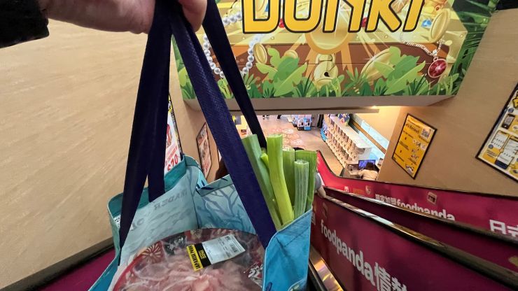 いつものように食料品の買出し。^^ エコバックから長ネギがはみ出していても、もう怖いものはない!(笑) 日本で、長ネギがはみ出したエコバックを肩に下げて東京上野ラインとか湘南新宿ラインに乗るのは勇気が要るけど、香港だと周囲の目は全く気にならないぞ。(笑) ↓