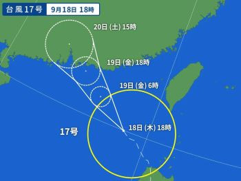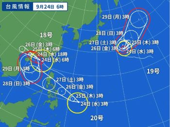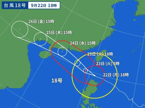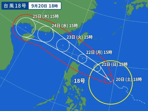 スーパー台風に発達した18号は、かなり進路予想がハッキリして来ました。(-。-; ↓