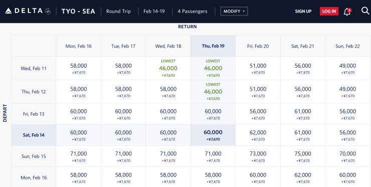 来年2月中旬、春節の「9連休」があります。^^ 一般的に、単身赴任の海外駐在員は日本に一時帰国するものです。 もちろんわたしも考えはしたのですが、@ 2月はまだ寒いし A 中旬あたりから花粉の悲惨、もとい、飛散が始まるし B この年末年始にかけて一時帰国するし C 翌月(3月)にも日本出張があるし D そもそも、間もなく丸7年となるこの香港駐在自体この先はもう長くないし E 長男氏は期末試験前でどこも出かけられないと言うし、、、これだけの理由があると、日本は選択肢から外れてしまいます。 かと言って、香港にいても。。。 このシチュエーションで、「9連休」をどのように使ったら最も有意義か、というテーマで、あれやこれや考えています。 先日、実家の父が「グランドティトン(Grand Teton)をもう一度見てみたいな」と言っていたことを思い出して、ふと、デルタのウェブサイトで東京から飛んだ際の(無料航空券の)必要マイル数を調べてみました。 8月、長女氏がアトランタに旅行した際、虎の子の12万マイルを拠出してしまったので、残りは41万マイル。デルタは(今のところ)マイレージの有効期限がないのがナイス!です。 イエローストーンやグランドティトンのゲートシティーは、一般的にソルトレイクシティです。 (直行便はないので)シアトルあたりでトランジットになるわけですが、うーむ、、、 かなりのマイルを取られます。 が、シアトルだと、おぉ、6万マイル。ジジババに長女氏、4人でも24万マイルで収まります。 ↓