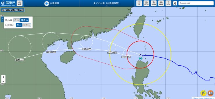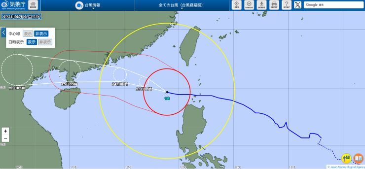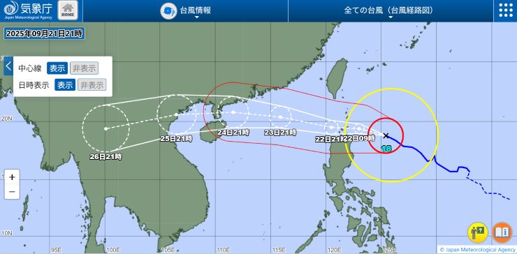 まぁ、水曜に飛ぶか飛ばないか台風の進路を見ながら一喜一憂するより、今から1日ズラして、それに向けた準備をした方がいいでしょう。^^ まだ今回はいいのですが、ホントのホント、10月末の石垣島ペディに台風はカンベンして欲しいところです。 ということで、いつものように週末はアッと言う間に終了。 ゆっくり過ごせたのはいいけれど(悪天候で)山歩きには行けず、残念。少し身体が鈍っています。 火曜から水曜にかけて、恐らくシグナル8とか、下手するとシグナル10など出る可能性があって、仕事に影響するかな。それにしても、もともとの水曜のフライトはまさにビンゴじゃないか、、、(-。-; ↓ 木曜のフライトは、火曜の夜に到着する機材を香港に留め置いて充当するんだろうから、火曜に飛んで来られるかがネックかな。 ■ 2025年9月22日(月) 〔 TOP 〕 昨夜の受信より。^^ Life Radio Santiago City(DWET)@ 1179kHz 終了部分が、なかなかいい感じで入感していました。^^ ↓ ▽ DWET-Santiago City (3:52) 1179kHz 9/21/25 21:20〜(JST)Canned ID・お祈り・終了アナウンス・国歌