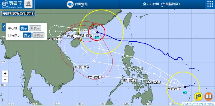 、、、ということで、金曜まで来ました。 あと1日! ^^ 本日は、月イチでオブザーバー参加している日本の会議にオンラインで出席。 いつものように、最後の方に発言機会が「30秒」ほどある以外はただひたすらに聴いているだけ。これが、当地時間朝09時から正午過ぎまで、およそ3時間続きます。(-。-; そんなこんなで午前中が完全に潰れ、午後はいろいろあってアッと言う間に夕方。。。 無事、今週も1週間を乗り切りました。 接近中の台風が心配ですが、まずは週末に滑り込むこととしましょう。^^ ■ 2025年9月20日(土) 〔 TOP 〕 週末。 9月も、20日まで来ました。 「台風17号」から変わった熱帯低気圧が香港を掠めるように通過中で、朝から断続的に激しい雨。 さすがに山歩きはムリか 〜 (-。-; 今日は、来週水曜に迫った日本出張の準備などしながらのんびり過ごすこととします。 一方、今度は「台風18号」がちょうどフライト当日香港に最接近、という予報、、、(-。-; ↓