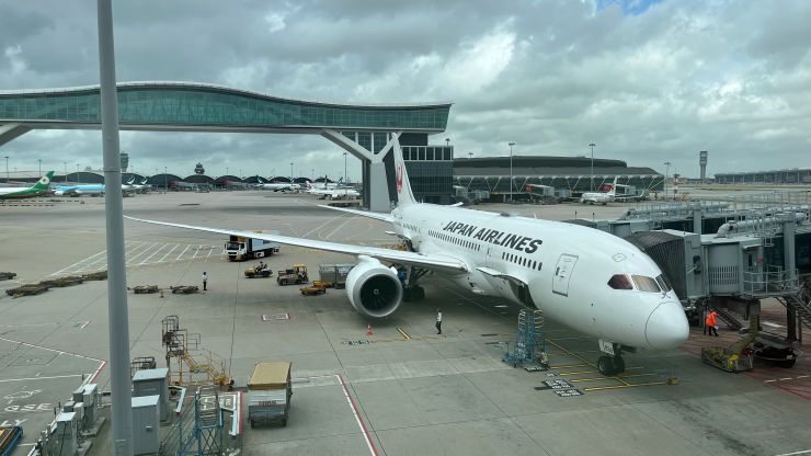 今朝日本から来たJL735 は無事到着して、これが折り返してJL736 となります。本日の機材はB788。 ↓