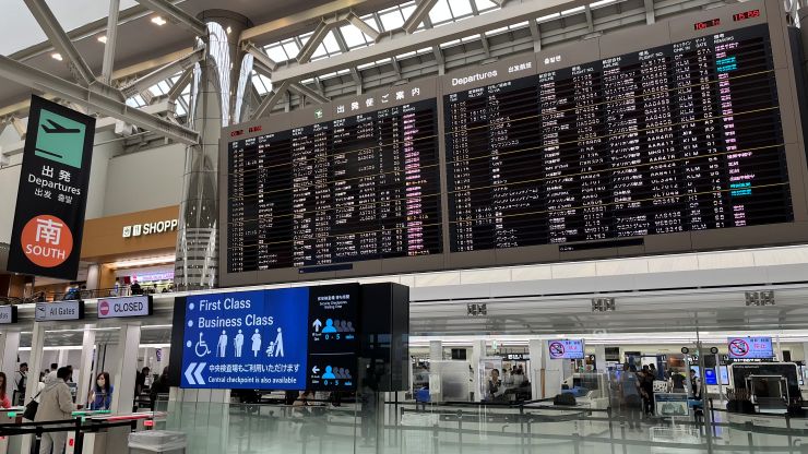 到着便の遅延で出発が「5分」遅れる、と丁重なお詫びのアナウンスが流れています。さすが日本! ↓
