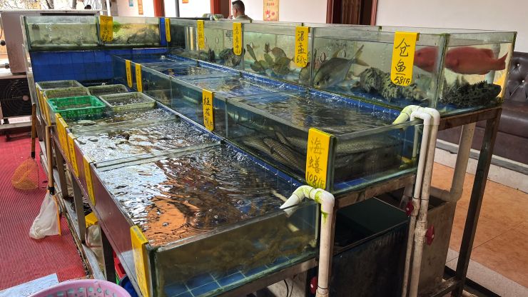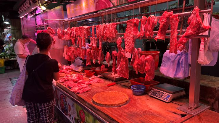 帰り道、街市(マーケット)で買い物。 こういうところで買えば安上がりなのかも知れないけど、言葉が通じないうえ勇気が出ない。(-。-; ここまでグロテスクなのは、日本にはないよな。 ↓