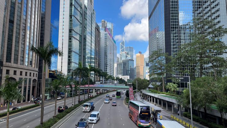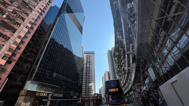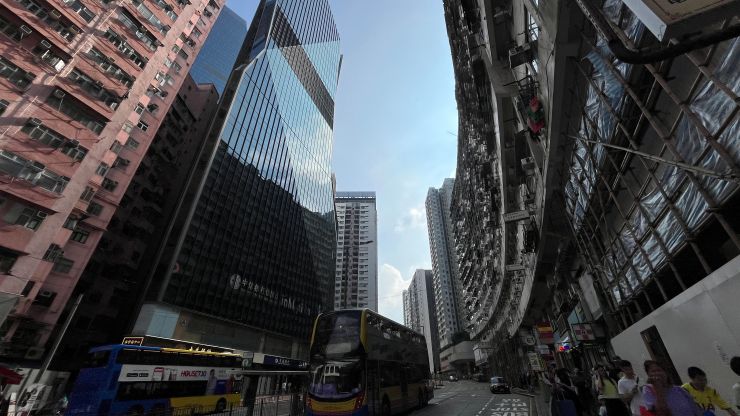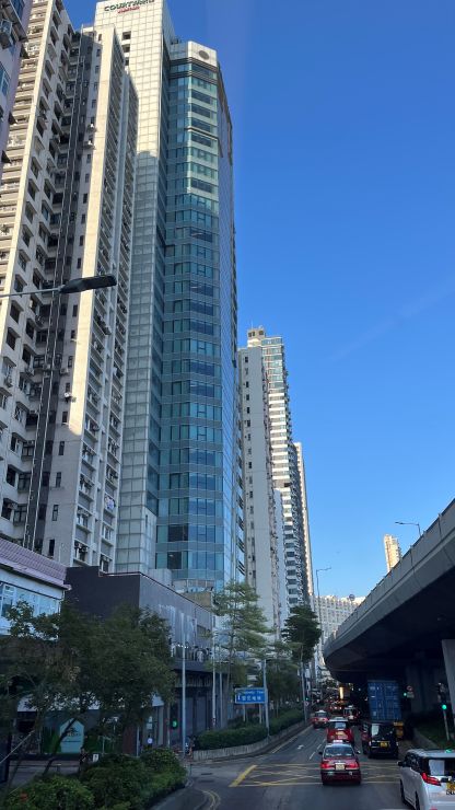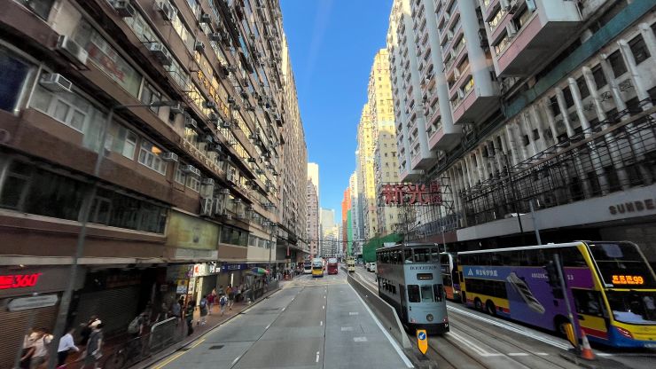 今日も、ダブルデッカーのアッパーデッキ最前席を確保しました。^^ 見晴らし良好。朝の香港の街並みを少し高いところから眺めつつ、、、 ↓