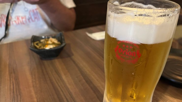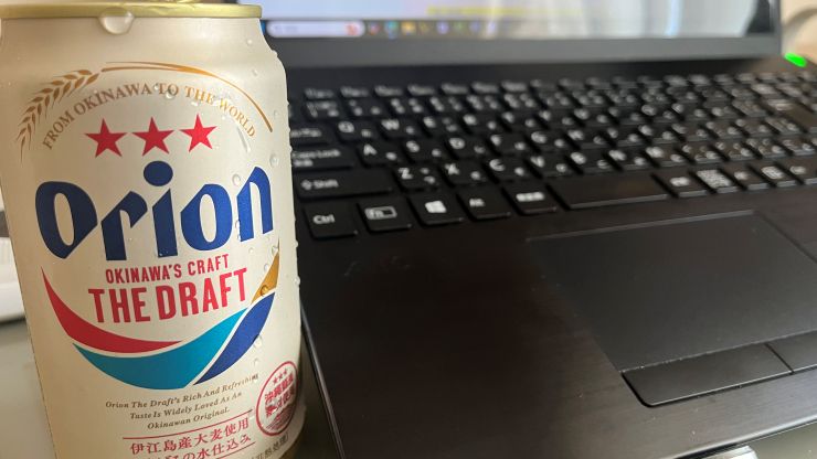 シャワーを浴びて、すみません、午前中から液体燃料を注入します。 今月末の石垣島ペディに向けて、オリオンビールでゲン担ぎ。お願いだから台風来ないで 〜 (笑) ↓