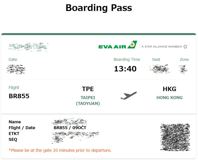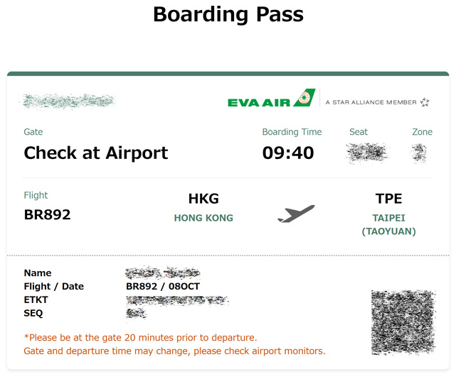 帰りは、当地時間14:10発のエバー航空855便(BR855)香港行。 エバー航空はスターアライアンスか 〜 ANAのマイルが貯まったりするのですが、大した距離でもなくエコノミーの格安航空券なので手続きはパス。^^;; ↓
