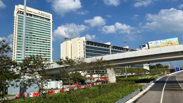 空港すぐ近くの、國泰航空(キャセイパシフィック航空)本社。 この時間のバスは、同社の社員が通勤するため少しルートを変更して遠回り。同社の本社前のバス停に止まります。 結構な数の人がここで降りて行くので、なるほど、香港島からここまで通勤する人ってそれなりにいるんですねえ。 ↓