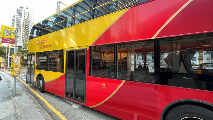 9番のバスがやって来ました。 香港のバスは多くがダブルデッカー(2階建て)でナイスです。^^ ↓