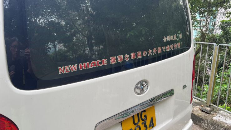 いつものように山頂で腰を下ろしてゆっくり休憩のあと、折り返し 〜 ハイエースの、ちょっと意味不明な日本語。「車廂」や「大升級」は、日本語ではまず使わないな。↓